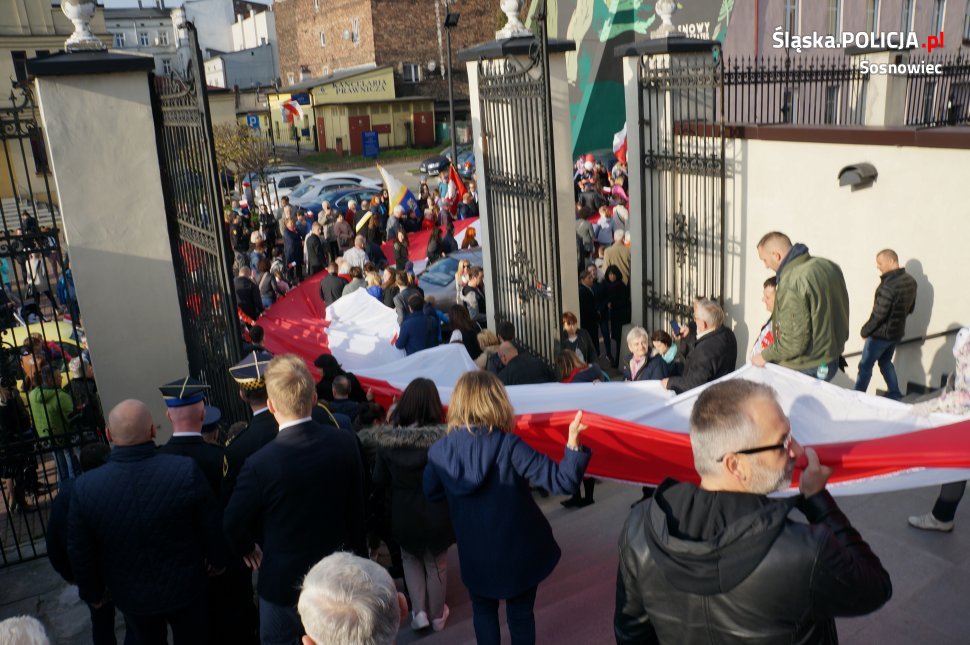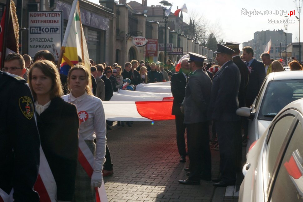 Sosnowieccy policjanci zabezpieczali wszystkie imprezy, jakie wczoraj z okazji 100 rocznicy odzyskania przez Polskę niepodległości odbyły się w mieście. W szczególności wyzwaniem był marsz, podczas którego rzesze sosnowiczan, niosąc flagę, przeszło głównymi ulicami miasta spod Katedry do parku sieleckiego. We wszystkich tych uroczystościach uczestniczył Komendant Miejski Policji w Sosnowcu insp. Dominik Łączyk.