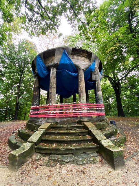 Ponadto wykonawca będzie musiał odtworzyć brakujące detale historyczne, jak gzymsiki i fryzy głowicowe, pierścienie, które znajdowały się na słupach gloriety. Remont obejmuje też wykonanie barierek na dolnym tarasie i odtworzenie tarasu górnego na dachu gloriety, na który będą prowadziły ażurowe, stalowe schody.