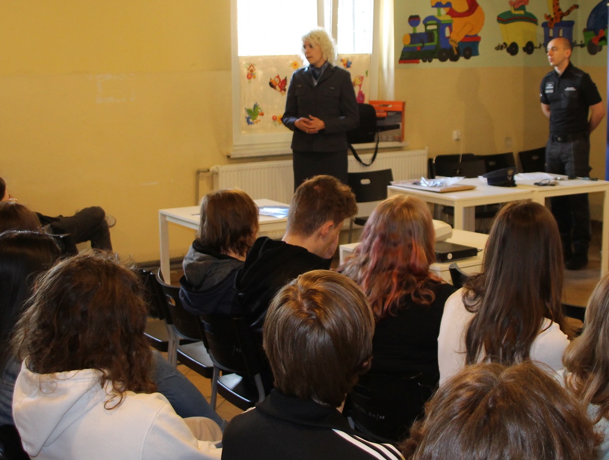 Spotkanie uczniów z funkcjonariuszami Służby Więziennej odbyło się w dniu 9. maja 2022 r. w ramach programu profilaktyki przestępczości wśród nieletnich o nazwie “Na zakręcie”. Dzięki niemu uczniowie z II Liceum Ogólnokształcącego z Oddziałami Dwujęzycznymi im. Emilii Plater w Sosnowcu mieli okazję zapoznać się z podstawowymi informacjami na temat polskiego systemu penitencjarnego oraz zadań Służby Więziennej. Młodzież dowiedziała się od funkcjonariuszy czym różnią się od siebie poszczególne typy i rodzaje zakładów karnych oraz systemy odbywania kary pozbawienia wolności, a tym samym poznali przeznaczenie sosnowieckiej jednostki penitencjarnej.