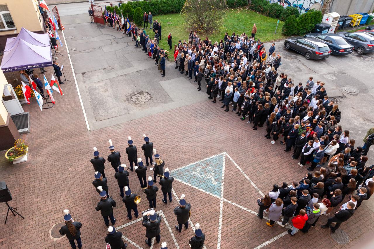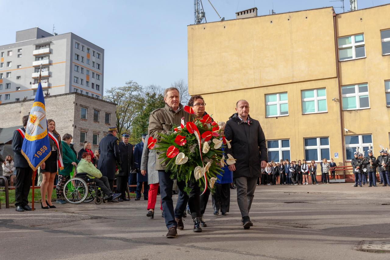 Oficjalne miejskie obchody Święta Niepodległości 2023 w Sosnowcu rozpoczęły się uroczystościami w Centrum Kształcenia Zawodowego i Ustawicznego w Sosnowcu.
