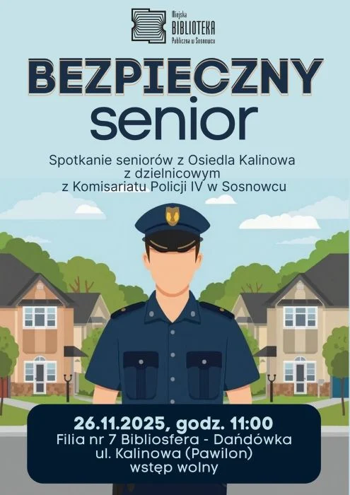 Dzielnicowi z Komisariatu Policji IV w Sosnowcu zapraszają wszystkich seniorów z osiedla Kalinowa na spotkanie poświęcone bezpieczeństwu osób starszych. Wydarzenie odbędzie się 26 listopada 2025 roku o godzinie 11.00 w Bibliotece – Filia nr 7 Bibliosfera przy ulicy Kalinowej w Sosnowcu.