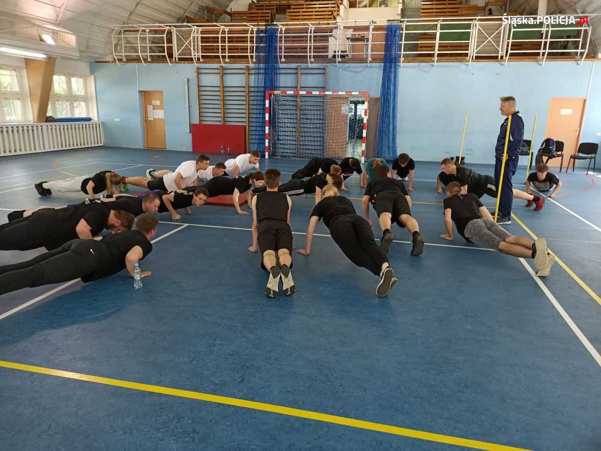 Uczniowie klas mundurowych liceów z Katowic i Sosnowca sprawdzili swoje umiejętności na torze przeszkód. Jest to jeden z etapów postępowania kwalifikacyjnego dla kandydatów ubiegających się o przyjęcie do Policji. Zajęcia zorganizowali mundurowi z Wydziału Doboru i Szkolenia Komendy Wojewódzkiej Policji w Katowicach.