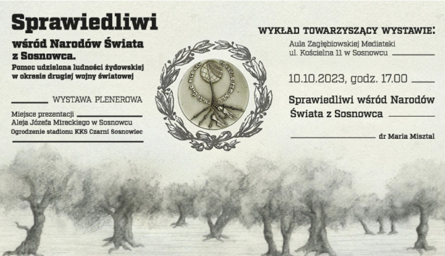 Wykład poprowadzi Maria Misztal dr nauk humanistycznych Uniwersytetu Opolskiego, autorka licznych artykułów dotyczących okresu drugiej wojny światowej w Zagłębiu Dąbrowskim. Wystawa „Sprawiedliwi wśród Narodów Świata z Sosnowca. Pomoc udzielona ludności żydowskiej w okresie drugiej wojny światowej” prezentowana jest na ogrodzeniu stadionu KKS Czarni Sosnowiec przy Aleja Józefa Mireckiego w Sosnowcu. Więcej informacji o wystawie na stronie http://www.zameksielecki.pl.