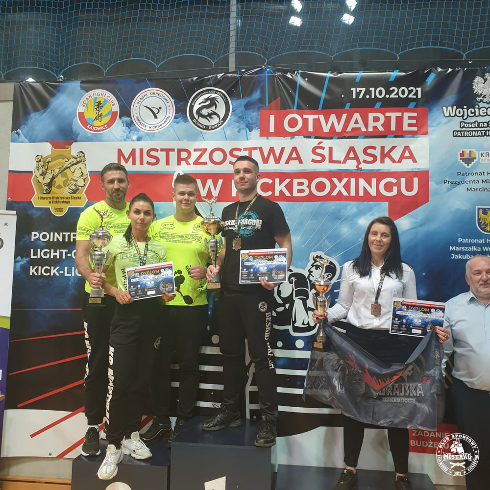 Zawodnicy Klubu Sportowego Mistral osiągnęli bardzo dobry wynik podczas I Otwartych Mistrzostw Śląska w Kickboxingu, które odbyły się 17 października w Katowicach. Zawodnicy spisali się znakomicie, zdobywając łącznie 48 medali – w tym 11 złotych, 13 srebrnych i 24 brązowych, co dało im 2 miejsce w klasyfikacji generalnej zawodów.
