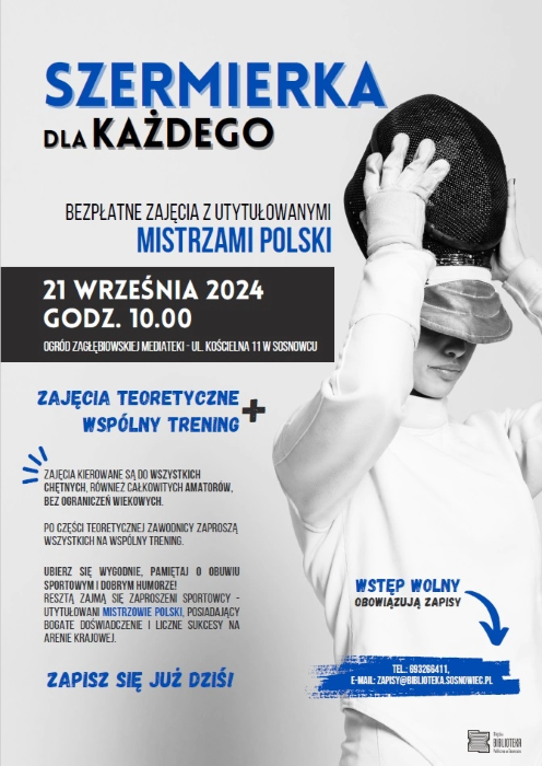 Już w sobotę 21 września 2024 o godz. 10.00 w Ogrodzie Zagłębiowskiej Mediateki (ul. Kościelna 11 w Sosnowcu) odbędą się bezpłatne zajęcia z utytułowanymi mistrzami Polski „Szermierka dla każdego”.