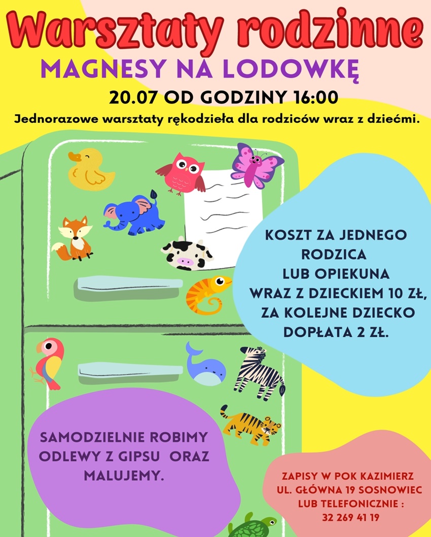 Miejski Dom Kultury Kazimierz w Sosnowcu zaprasza rodziców (opiekunów) wraz z dziećmi na wakacyjne warsztaty tworzenia magnesów na lodówkę.
