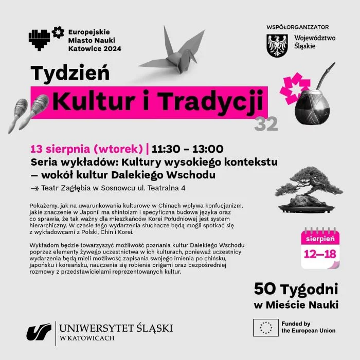 Spotkanie odbędzie się w ramach Tygodnia Kultur i Tradycji organizowanego przez Europejskie Miasto Nauki Katowice 2024 oraz Uniwersytet Śląski w Katowicach.