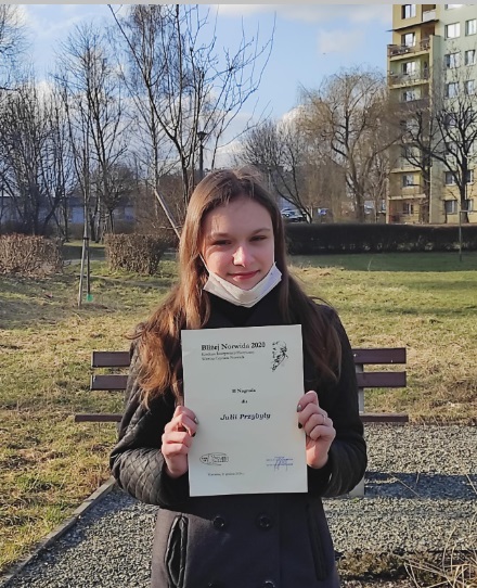 Julia Przybyła z klasy II ep Centrum Kształcenia Zawodowego i Ustawicznego Technikum nr 6 Grafiki, Logistyki i Środowiska im. Legionów Polskich zdobyła II miejsce w XXIV Ogólnopolskim Konkursie „Bliżej Norwida”.