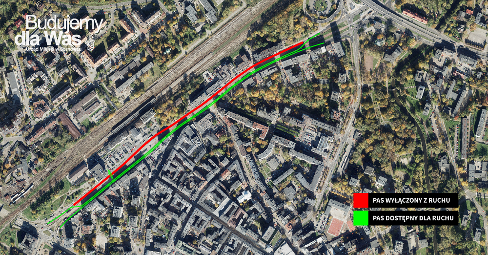 Firma Eurovia, która zajmuje się przebudową ulicy 3 Maja w Sosnowcu przeniesienie ruchu w centrum miasta ma drugą nitkę jezdni (po stronie Placu Stulecia tzw. Patelni). Chodzi o odcinek od „plastrów miodu” do budynku dawnego szpitala nr 2.