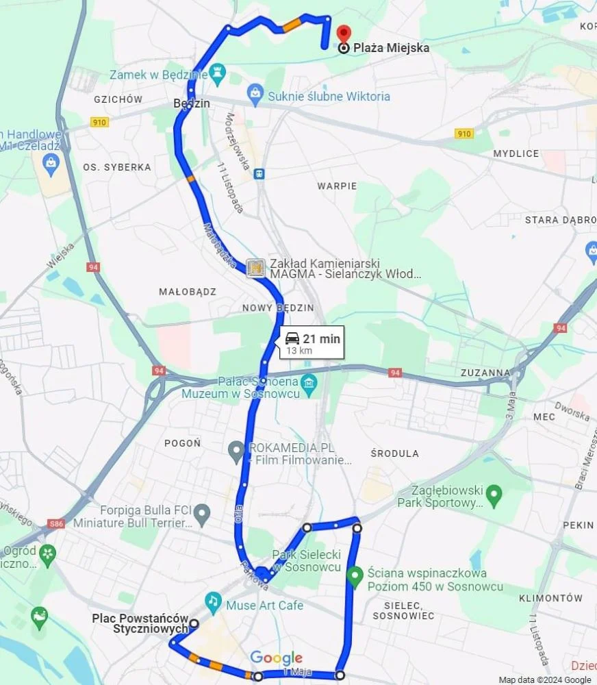 Przejazd rozpocznie się o godzinie 15:00. Miejscem startu jest plac naprzeciwko Dworca PKP w Sosnowcu. Cała trasa liczy 13 km, a jej meta znajduje się na Plaży Miejskiej w Będzinie. W związku z zaplanowaną imprezą wystąpią czasowe utrudnienia w ruchu drogowym – pomiędzy godziną 14:30 – 17:00 w rejonie ulic 3 Maja (od Dworca PKP), Piłsudskiego (w kierunku ulicy Sienkiewicza), 1 Maja, Narutowicza oraz w rejonie ronda znajdującego się przy ulicy Orlej i Będzińskiej.