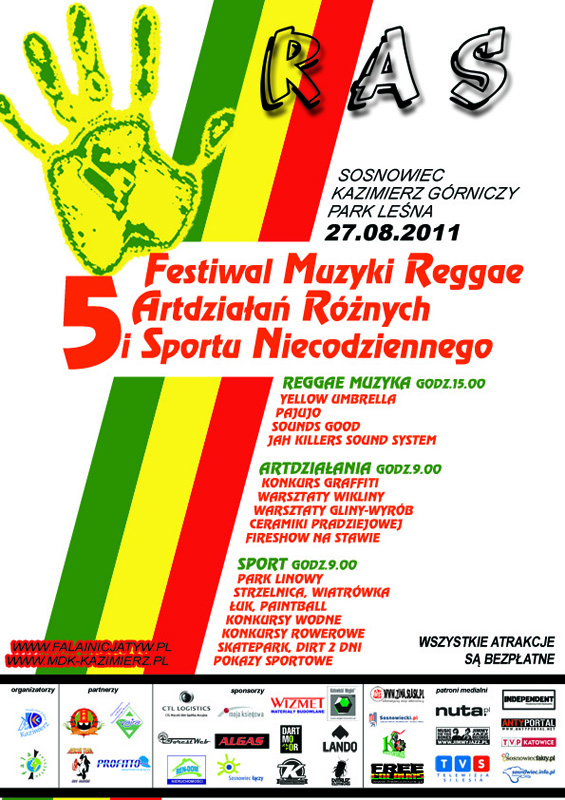 Miejski Dom Kultury "Kazimierz" w Sosnowcu oraz Stowarzyszenie Fala Inicjatyw zapraszają wszystkich na V Festiwal Muzyki Reggae, Art Działań Różnych i Sportu Niecodziennego,który odbędzie się 27 sierpnia 2011 roku w Parku Leśna w Kazimierzu Górniczym. Gwiazdą wieczoru będzie Yellow Umbrella.