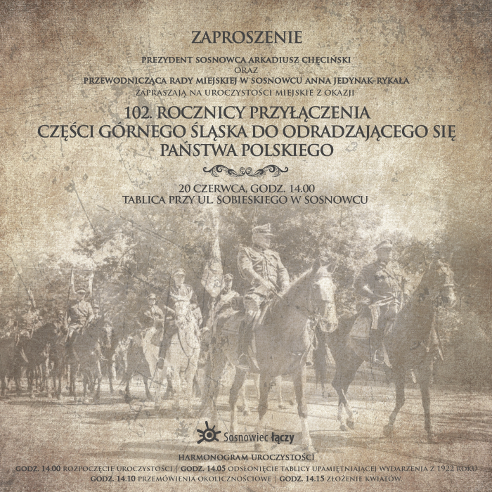 W czwartek 20 czerwca odbędą się w naszym mieście uroczystości związane ze 102. rocznicą przyłączenia części Górnego Śląska do Odradzającego się Państwa Polskiego.