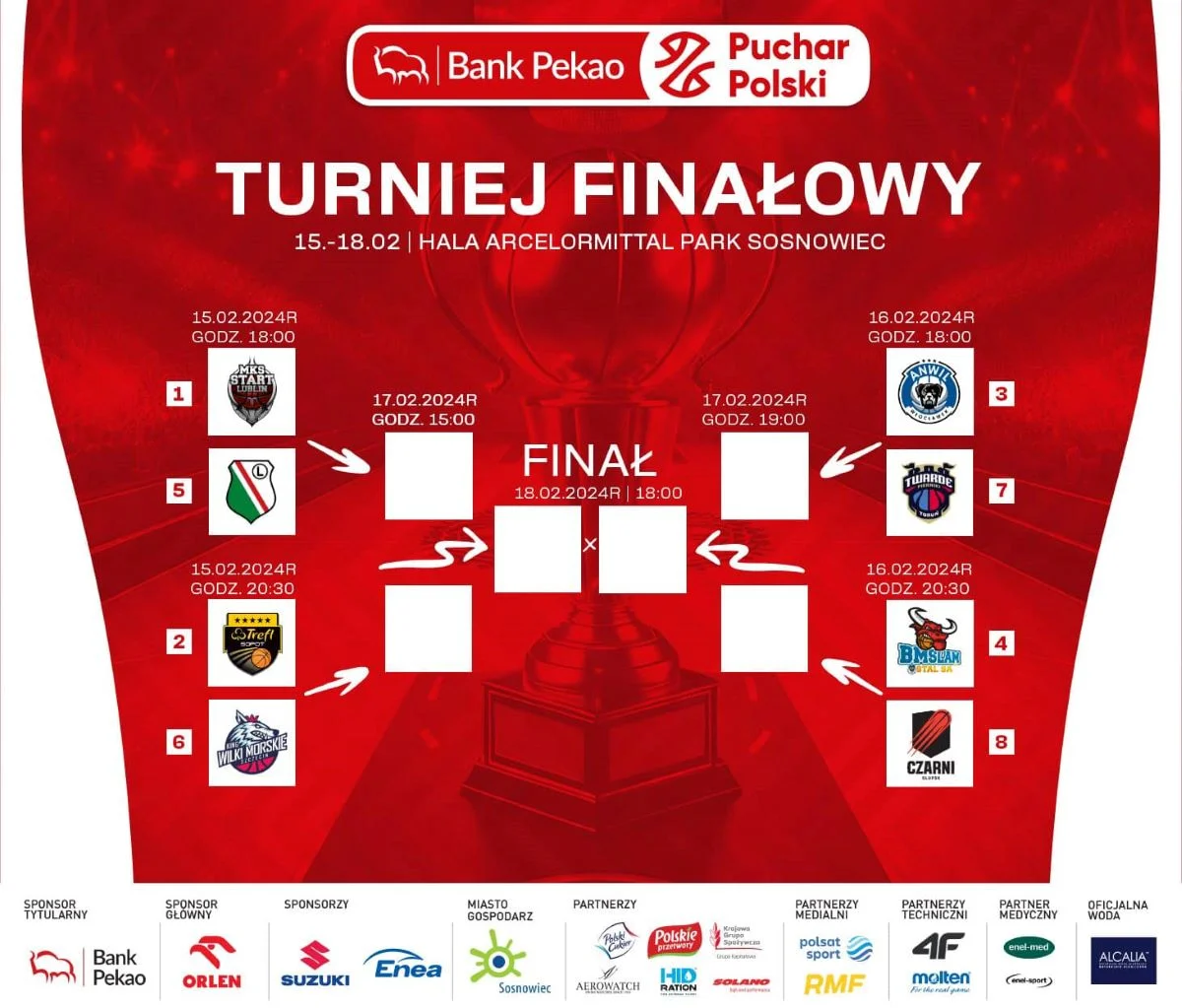 – Niezwykle odpowiedzialne zadanie! Właśnie jesteśmy po losowaniu par turnieju finałowego ORLEN Basket Liga koszykówki mężczyzn Suzuki Puchar Polski, który odbędzie się w dniach 15-18 lutego w Sosnowiec łączy ArcelorMittal Park – ZPS Sosnowiec. Miałem przyjemność wylosować cztery drużyny. Emocje będą ogromne – przekazuje Arkadiusz Chęciński w mediach społecznościowych.