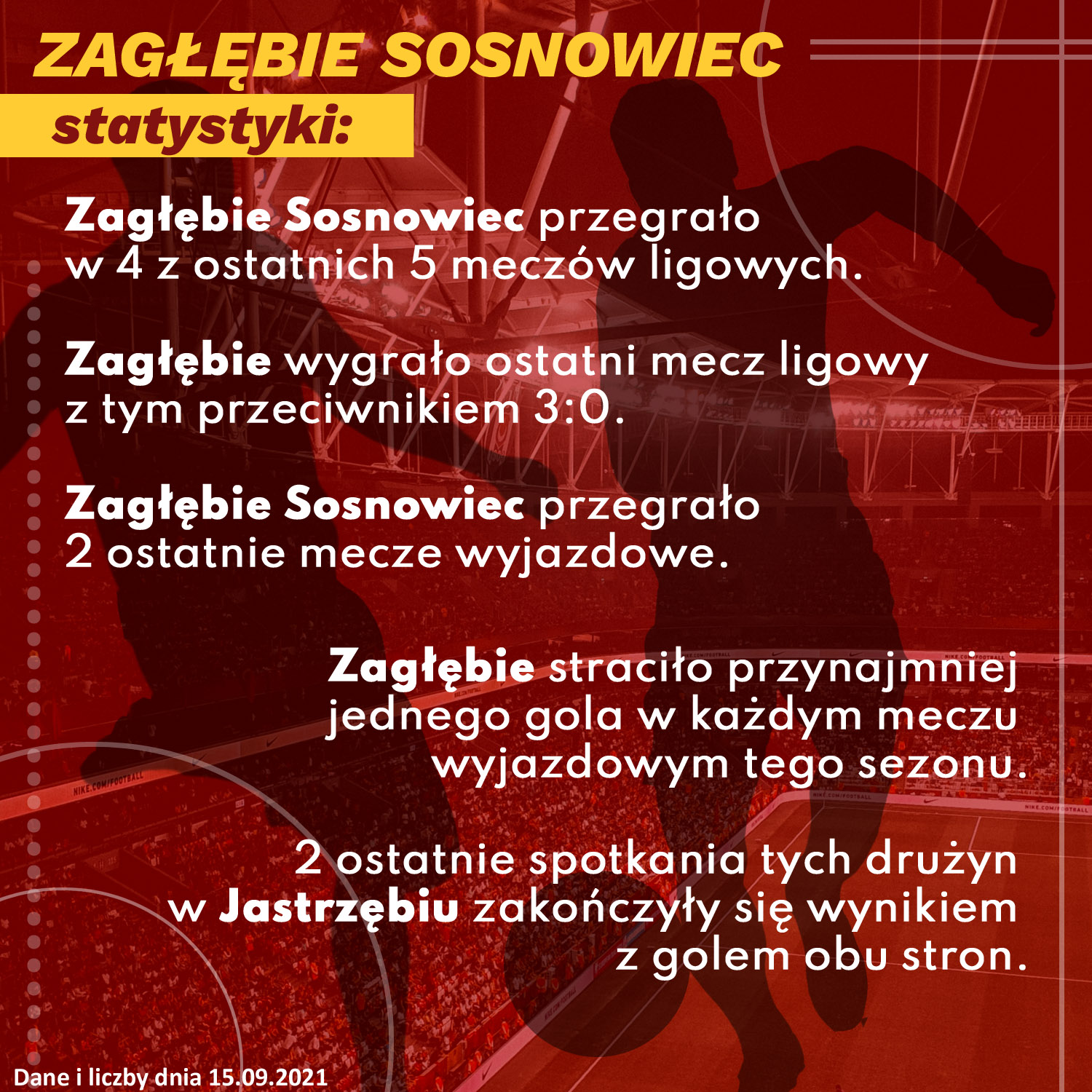 Początek sezonu w wykonaniu Zagłębia Sosnowiec jest sporym rozczarowaniem, dlatego też nic dziwnego, że jest to drużyna, która dokonała już zmiany trenera. Kolejnym przeciwnikiem tego zespołu będzie GKS Jastrzębie. Kto zwycięży w pojedynku na dole ligowej tabeli? Jak prezentują się opinie analityków zakładów bukmacherskich? O tym wszystkim opowiem w dzisiejszej analizie!