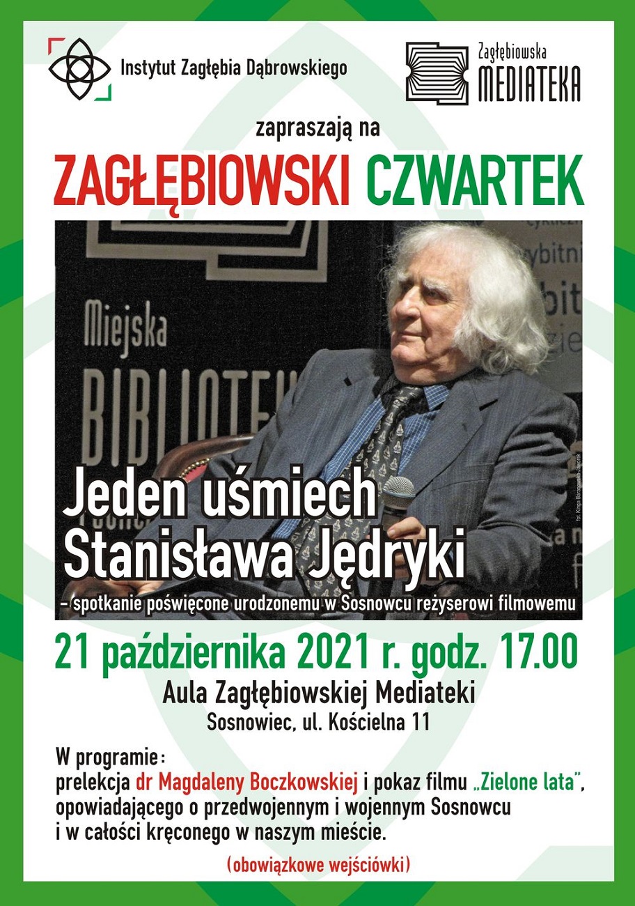 Prelekcję o Stanisławie Jędryce wygłosi dr Magdalena Boczkowska – starszy kustosz działu regionalnego Zagłębiana, a po wykładzie odbędzie się specjalny pokaz filmu Zielone lata (1979), opowiadającego o przedwojennym i wojennym Sosnowcu i w całości kręconym w naszym mieście. Scenariusz filmu oparto na powieści Jerzego Przeździeckiego Troje znad Czarnej Rzeki.