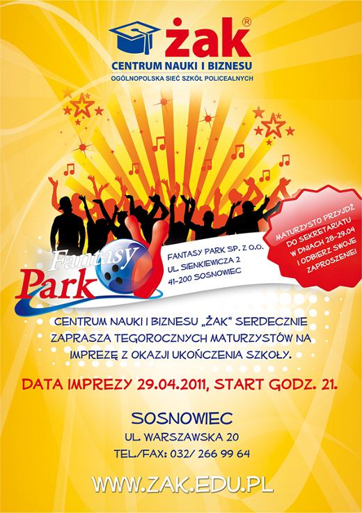 Już 29 kwietnia odbędzie się wręczenie świadectw dla tegorocznych maturzystów! Z tej okazji szkoła Żak przygotowała dla wszystkich absolwentów szkół średnich imprezę w Fantasy Parku.