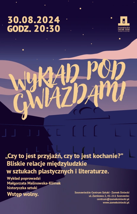 Na zakończenie wakacji Sosnowieckie Centrum Sztuki – Zamek Sielecki serdecznie zaprasza na wyjątkowy wykład, który odbędzie się 30 sierpnia o godz.20.30 na dziedzińcu zamku.