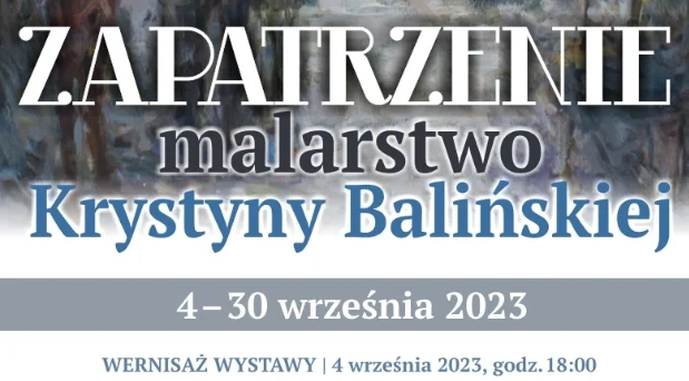 Miejska Biblioteka Publiczna w Sosnowcu serdecznie zaprasza na wernisaż wystawy prac malarskich Krystyny Balińskiej „Zapatrzenie”, który odbędzie się w poniedziałek 4 września o godz. 18.00 w Galerii „Pod świetlikiem” Zagłębiowskiej Mediateki przy ul. Kościelnej 11 w Sosnowcu.