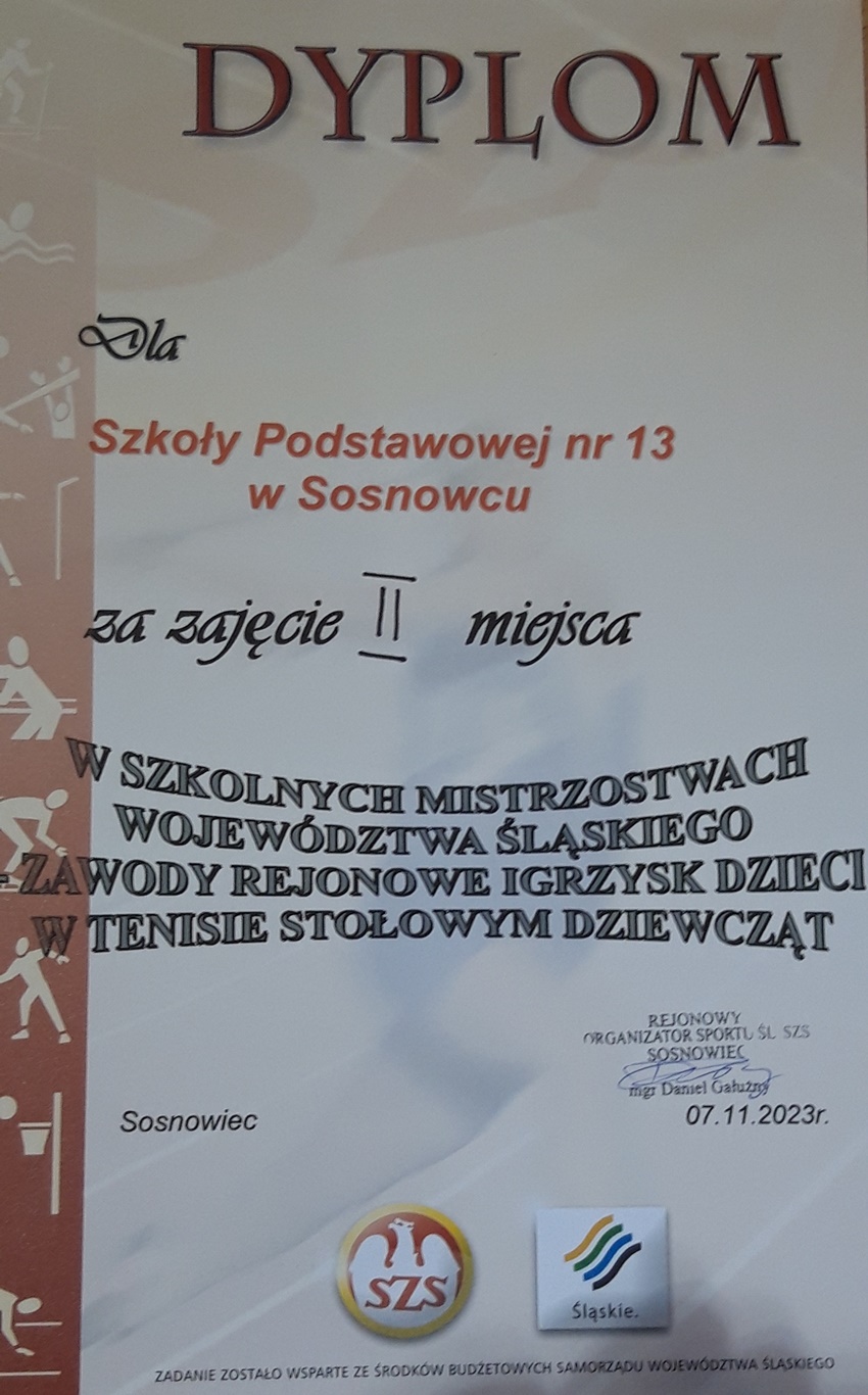 8 listopada w SP 13 w Sosnowcu rozegrano Zawody Rejonowe Igrzysk Dzieci w tenisie stołowym. Prawo startu miały tylko po dwie najlepsze drużyny z Sosnowca i Jaworzna.