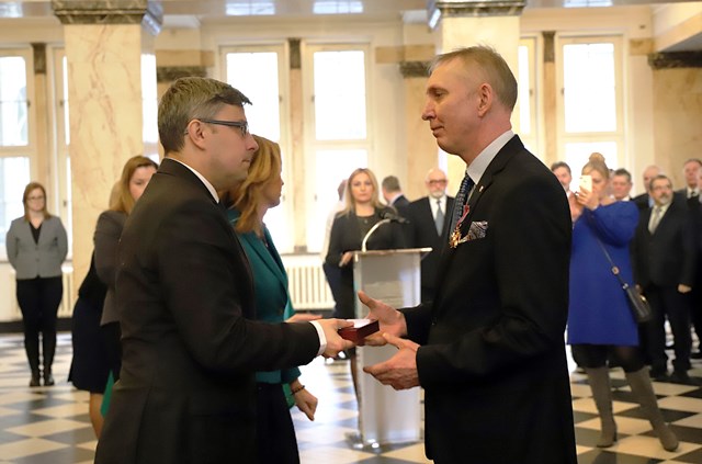 Leszek Chłosta, trener szablistów Zagłębiowskiego Klubu Szermierczego Zagłębie Sosnowiec odznaczony Złotym Krzyżem Zasługi przyznanym przez Prezydenta RP Andrzeja Dudę. Wyróżnienie wręczył wojewoda śląski Jarosław Wieczorek.