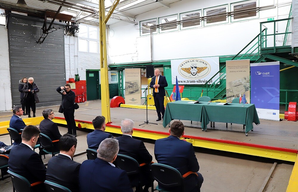 W siedzibie Tramwajów Śląskich S.A., w obecności wiceministra inwestycji i rozwoju Witolda Słowika oraz wojewody śląskiego Jarosława Wieczorka, podpisana została umowa na dofinansowanie drugiego etapu projektu modernizacji infrastruktury tramwajowej.