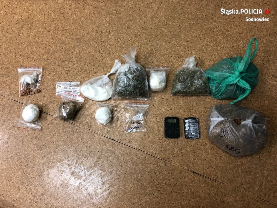 Kryminalni z komisariatu V w Sosnowcu udali się w rejon osiedla Wagowa, gdzie według posiadanych informacji mogła przebywać osoba posiadający narkotyki. Na miejscu zauważyli młodego mężczyznę, który kurczowo trzymał przy sobie reklamówkę. Na widok zbliżających się nieumundurowanych kryminalnych, mężczyzna zaczął oddalać się szybkim krokiem w stronę nieużytków. Policjanci szybko go zatrzymali. W reklamówce 23-latka z Sosnowca ujawnili pół kilograma amfetaminy, prawie 200 gramów marihuany oraz kilkadziesiąt tabletek ecstasy. Ponadto młody mężczyzna posiadał przy sobie ponad 700 gramów tytoniu bez polskich znaków akcyzy. O dalszym losie zatrzymanego zadecyduje sąd. Za posiadanie znacznych ilości narkotyków grozi 10 lat więzienia.