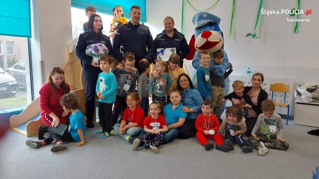 Policjanci korzystają z każdej okazji, by z najmłodszymi porozmawiać o bezpieczeństwie. Dlatego zawsze chętnie przyjmują zaproszenia placówek oświatowych na tego rodzaju spotkania. Tym razem odwiedzili maluchy z Niepublicznego Przedszkola „Akademia Kolorowych Podróży” w Sosnowcu. Towarzyszył im uwielbiany przez dzieci Sznupek. Kiedy policyjna maskotka opowiada o bezpieczeństwie, maluchy dużo łatwiej przyswajają przekazywaną wiedzę. Podczas wspólnej zabawy najmłodsi dowiedzieli się jak bezpiecznie przechodzić przez ulicę i jak zachować się podczas kontaktu z nieznajomym. Policjanci opowiedzieli dzieciom o swojej pracy. Podczas spotkania najmłodszym zaprezentowano również radiowóz oraz umiejętności psów służbowych. Na koniec spotkania, każdy maluch otrzymał piękne podziękowania za uczestnictwo w prelekcjach.