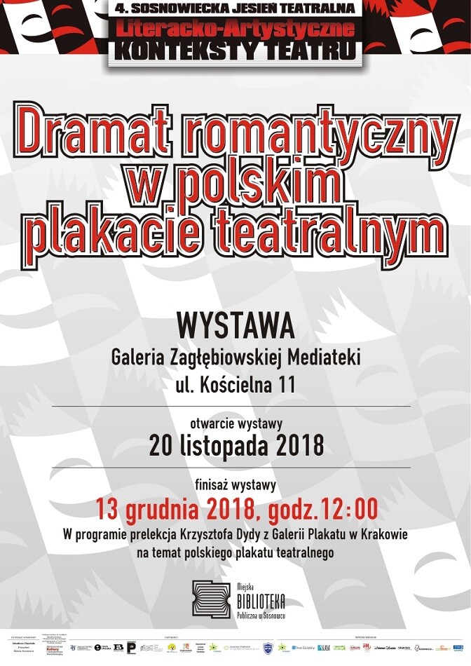 Zgromadzone dzieła zostały wypożyczone z Galerii Plakatu w Krakowie. Głównym przesłaniem ekspozycji jest prezentacja dorobku znakomitych polskich plakacistów, dla których inspiracją były sceniczne realizacje dramatów dziewiętnastowiecznych mistrzów pióra. Już teraz zapraszamy na finisaż wystawy 13 grudnia 2018 o godz. 12:00, z udziałem właściciela Galerii Plakatu, wybitnego znawcy polskiego plakatu, kolekcjonera i wielkiego pasjonata - Krzysztofa Dydy. Ekspozycję można zwiedzać od 20 listopada do 15 grudnia 2018 w godzinach otwarcia Zagłębiowskiej Mediateki.