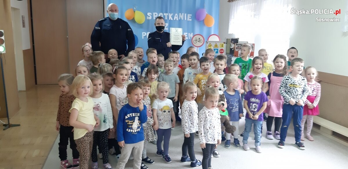 W miniony piątek odbyło się spotkanie dzielnicowych Komisariatu Policji II w Sosnowcu asp. Tomasza Kula i st. asp. Sławomira Krawczyk z dziećmi z Przedszkola Miejskiego nr 22 w Sosnowcu przy ulicy Hutniczej 3. Maluchy poznały zasady bezpiecznego poruszania się po ulicy i dowiedziały się dlaczego tak ważne są odblaski. Kulminacyjnym punktem wizyty było głośne czytanie bajki edukacyjnej.