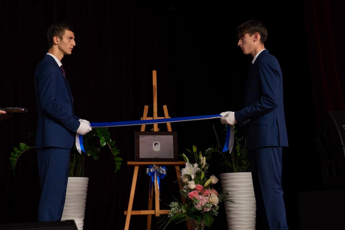 W uroczystości uczestniczyli uczniowie szkoły, absolwenci, nauczyciele, dyrekcja, a honorowym gościem był doc. dr hab. inż. Włodzimierz Bialik – syn Pani Dyrektor.