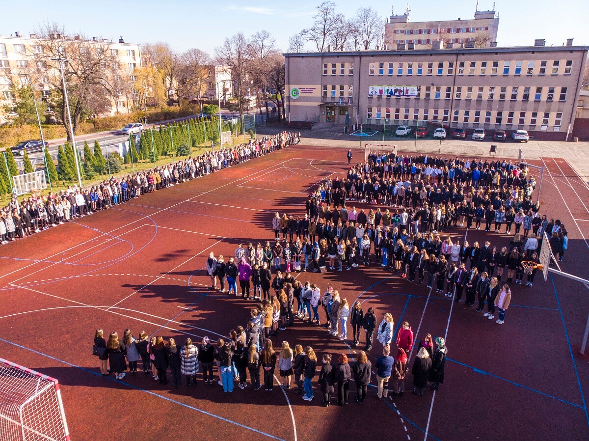 „Trochę się niepokoiłam, że pogoda pokrzyżuje nam plany, jednak na szczęście wszystko się udało, było ładnie i słonecznie. Nie przeprowadzaliśmy dużych prób. Nasi uczniowie wykazali się dyscypliną i bardzo sprawnie ustawili się w napis, który przecież widać tylko ze znacznej wysokości. Cieszę się, gdyż jest to z jednej strony odskocznia od szkolnej rutyny, z drugiej strony przedsięwzięcie wymagające wspólnego działania wielu osób. Zupełnie tak, jak musieli współdziałać nasi przodkowie walcząc o odzyskanie niepodległości. To dobrze, że nasi uczniowie wykazali się taką postawą chcąc uczcić to Święto” - powiedziała Anna Mróz, nauczycielka, koordynatorka akcji w CKZiU.