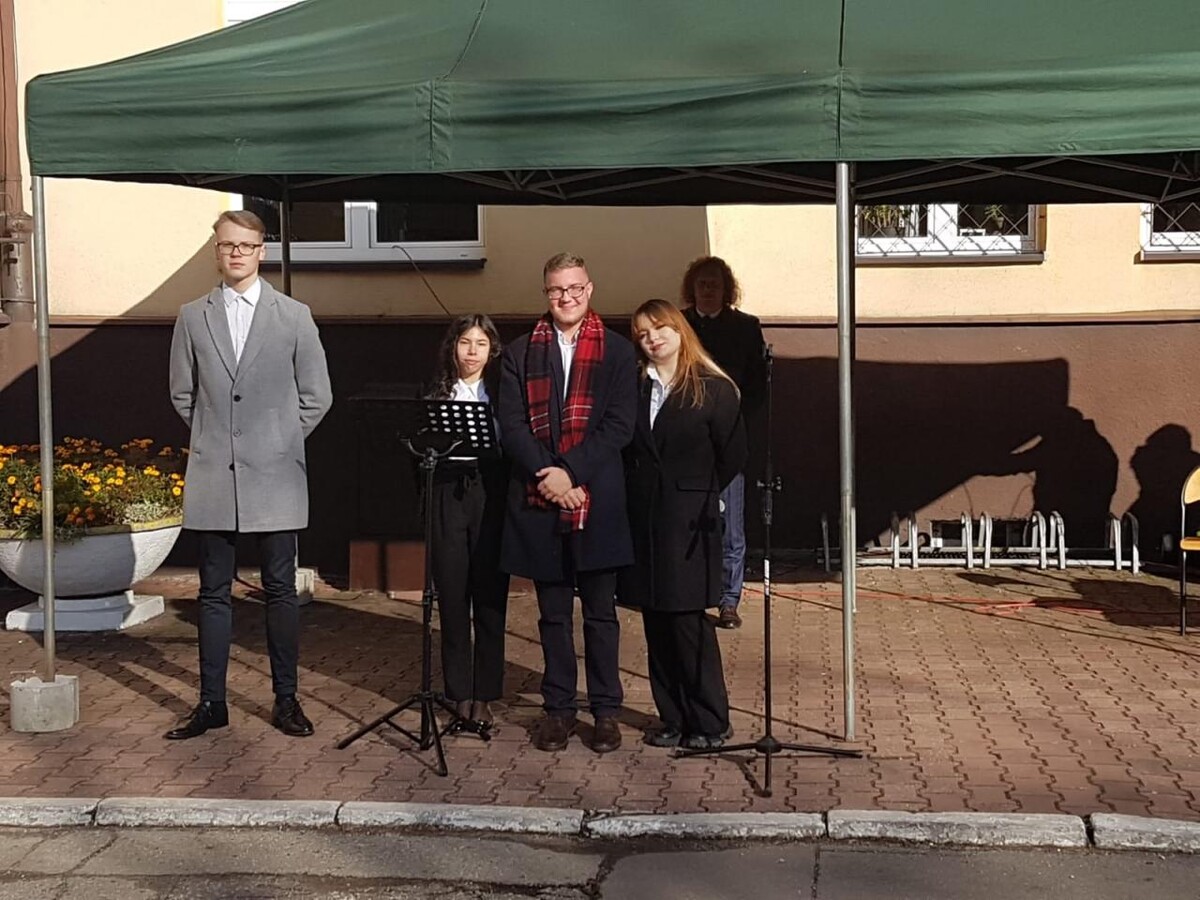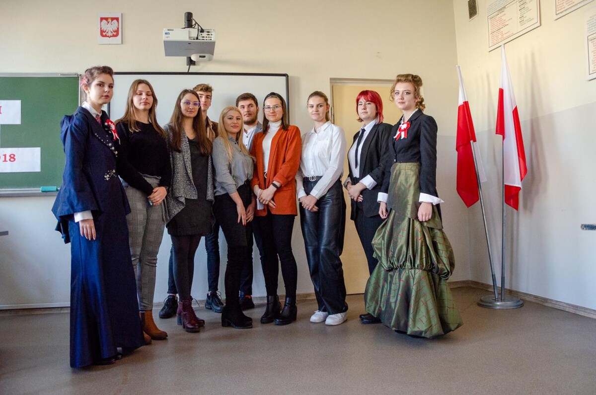 Oprawę dla uroczystości zapewniały uczennice ubrane w stroje z epoki. Suknie, w jakich nasze babcie i prababcie świętowały faktyczne odzyskanie Niepodległości przez Polskę 103 lata temu, zostały przygotowane i wykonane przez uczniów kierunków technik przemysłu mody oraz technik stylizacji.