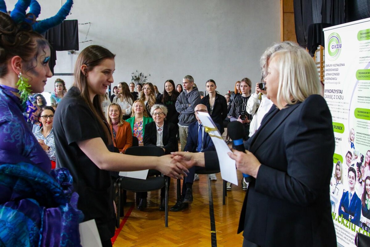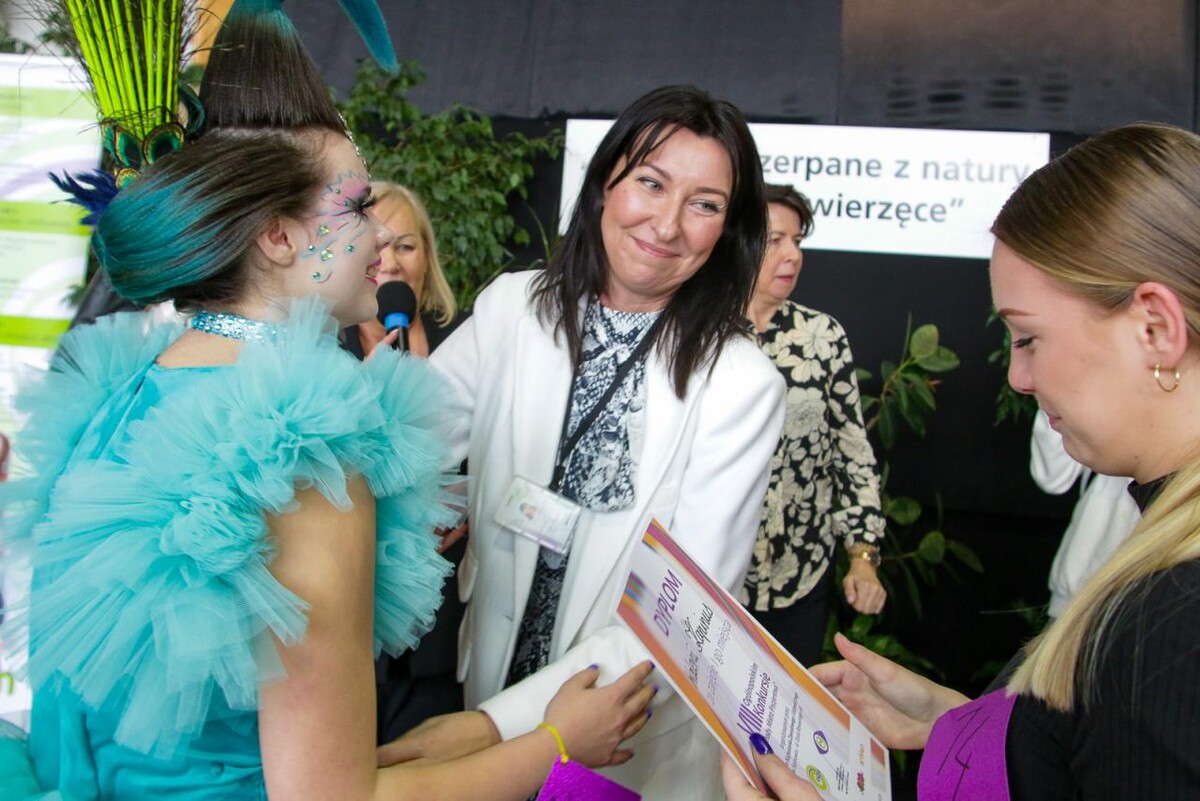 I MIEJSCE W KONKURSIE FRYZJERSKIM MŁODY MISTRZ FRYZJERSTWA otrzymała Waleria Kapinus, uczennica CKZIU w Sosnowcu przygotowana przez nauczyciela zawodu Renatę Jadowską
