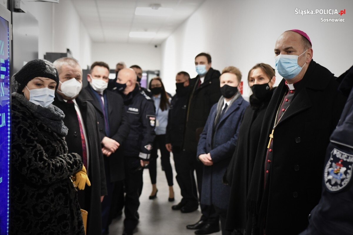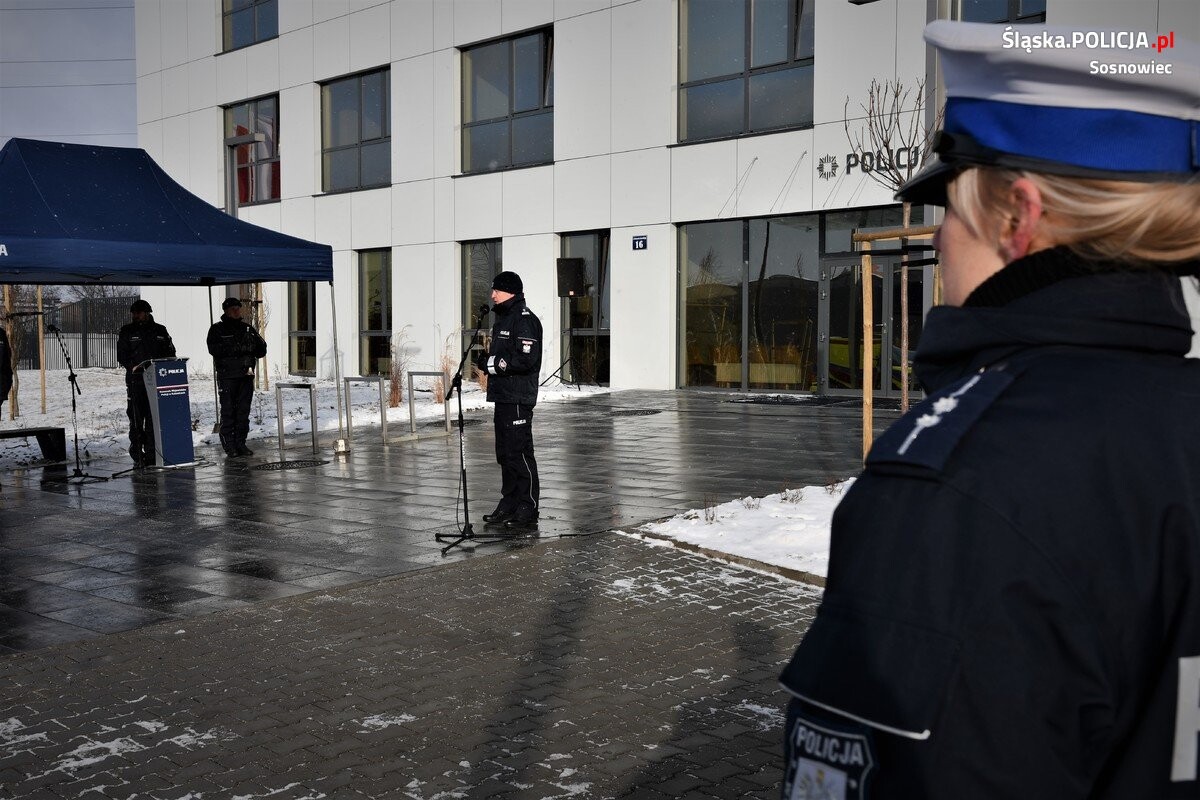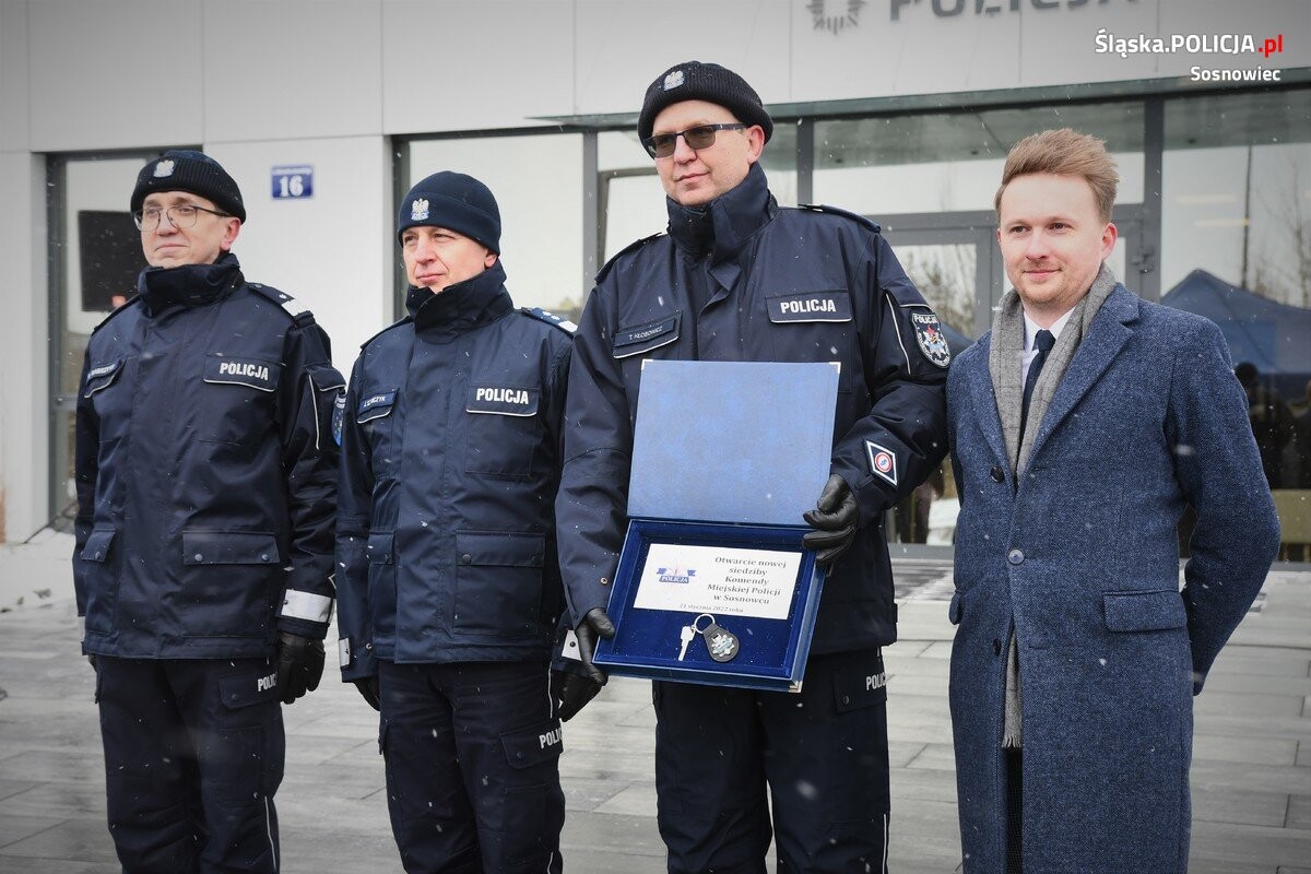 Nowy budynek został następnie poświęcony przez księdza biskupa dra Grzegorza Kaszaka, a symbolicznego przekazania klucza do nowej siedziby sosnowieckich policjantów Komendantowi Miejskiemu Policji w Sosnowcu insp. Tomaszowi Kłosowiczowi dokonał Komendant Główny Policji gen. insp. dr Jarosław Szymczyk wraz z towarzyszącym mu Komendantem Wojewódzkim Policji w Katowicach nadinsp. Romanem Rabsztynem i Zastępcą Prezydenta Sosnowca Jeremiaszem Świerzawskim. Podkreślić należy, że władze Sosnowca w całym procesie inwestycji służyły znacznym wsparciem, nie tylko finansowym.