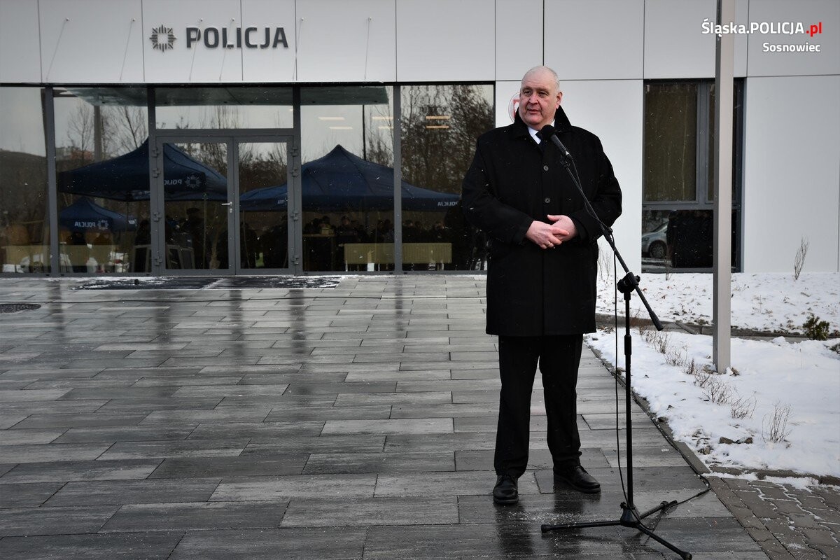 Komendant Główny Policji gen. insp. dr Jarosław Szymczyk podziękował Prokuratorowi Krajowemu Bogdanowi Święczkowskiemu i księdzu biskupowi dr. Grzegorzowi Kaszakowi za wielkie wsparcie przy powstawaniu sosnowieckiej komendy. Przyznał także, że wyniki w pracy, jakie osiągają sosnowieccy policjanci, zostały właśnie docenione. Sfinalizowanie tak ogromnej inwestycji było możliwe dzięki wsparciu funduszu programu modernizacji Policji.