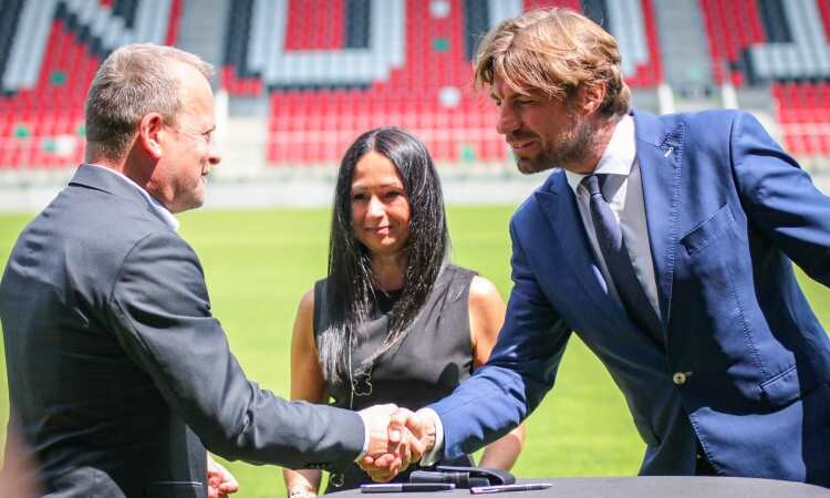 Na murawie stadionu piłkarskiego ArcelorMittal Park odbyła się konferencja prasowa podczas której została podpisana umowa współpracy pomiędzy RKS Raków Częstochowa a Zagłębiowski Park Sportowy sp. z o.o.