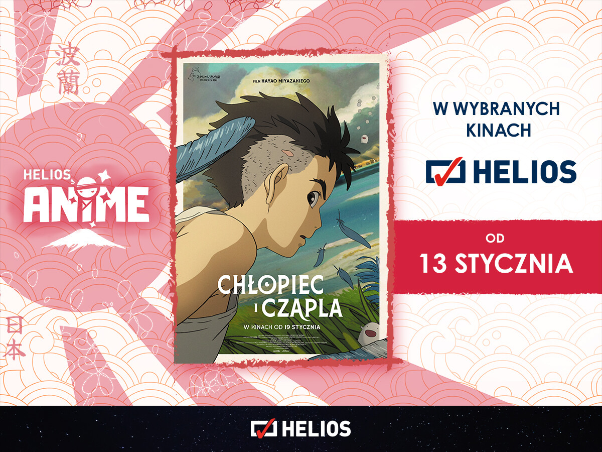 W najbliższym tygodniu cykl Kino Konesera pojawi się w Heliosie aż dwukrotnie! Poza poniedziałkowymi projekcjami, sieć przygotowała specjalne niedzielne seanse, poświęcone filmom oscarowym. Już 17 marca odbędą się pokazy tytułu „Chłopiec i czapla”, który otrzymał statuetkę dla najlepszej animacji. Dzieło Hayao Miyazakiego opowiada o młodym Mahito, próbującym poradzić sobie ze śmiercią mamy. Niespodziewanie zaczyna odwiedzać go czapla, mówiąca ludzkim głosem.