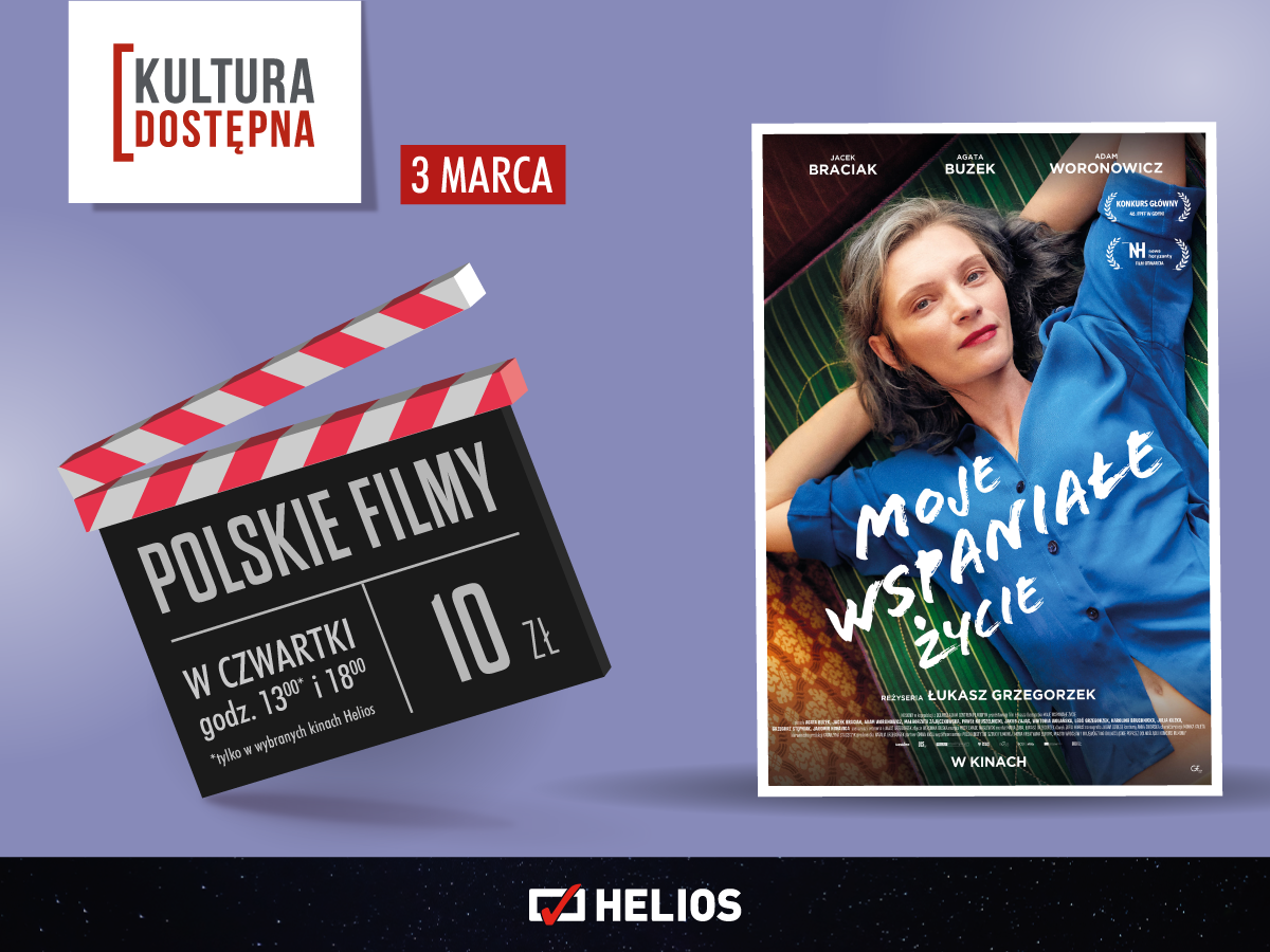 3 marca w ramach cyklu Kultura Dostępna zaprezentowany zostanie film „Moje wspaniałe życie” - słodko-gorzkie spojrzenie na losy kobiety, która prowadzi podwójne życie... Z jednej strony to kochająca żona i matka, a z drugiej zwariowana do granic kobieta realizująca skryte pragnienia, uwikłana w romans z kolegą z pracy. Wszystko jednak ma swój koniec, a pozornie perfekcyjny plan okazuje się mieć luki...