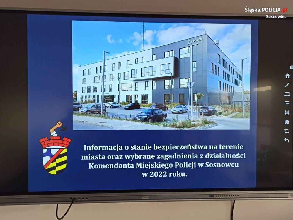 Wykrywalność przestępstw w Sosnowcu kształtowała się na poziomie: przestępstwa gospodarcze- 88,1 %, przestępstwa, w wyniku których nastąpił uszczerbek na zdrowiu- 92%, przestępstwa rozbójnicze- 85,1%, bójki i pobicia- 81,3%. Ogółem wykrywalność w pionie kryminalnym średnio wyniosła 62,5%. Sosnowieccy policjanci obsłużyli 19 762 interwencje. Prowadzili czynności w sprawie 90 wypadków drogowych ( 29 z nich to zdarzenia z udziałem pieszych), w ich wyniku na terenie naszego miasta 3 osoby poniosły śmierć. Mundurowi zatrzymali w 2022 r na terenie Sosnowca 394 nietrzeźwych kierowców. Komendant Miejski naświetlił zgromadzonym główne obszary zagrożeń przestępczością oraz sposoby i efekty walki z tymi zjawiskami. Przedstawił także główne założenia do realizacji na nadchodzący 2023 rok. Podczas posiedzenia wyniki swojej jednostki przedstawił również Komendant Miejski Państwowej Straży Pożarnej w Sosnowcu.