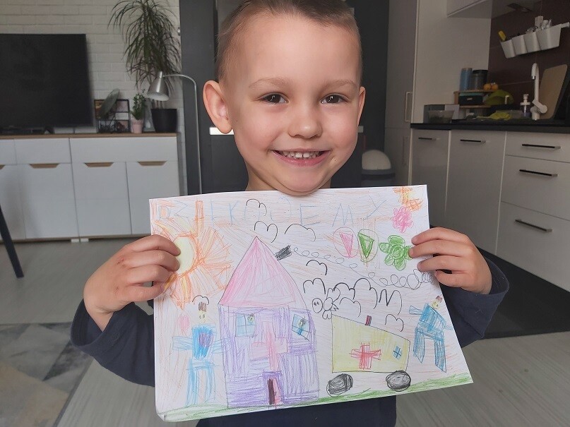 Dzieci narysowały kartkę/ laurkę dla pracowników służby zdrowia