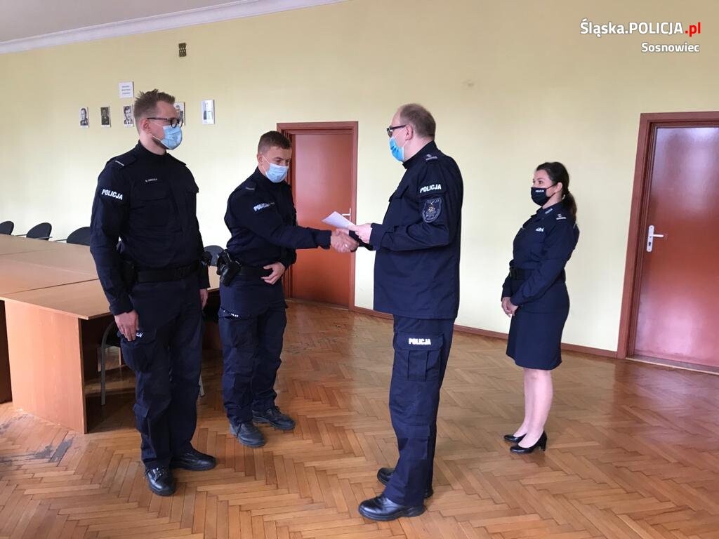 W piątek Komendant Miejski Policji w Sosnowcu insp. Tomasz Kłosowicz uroczyście przekazał policjantom załączone do listu pisemne podziękowania. Pogratulował im również wspaniałej postawy w służbie, życząc obu policjantom dalszych sukcesów.
