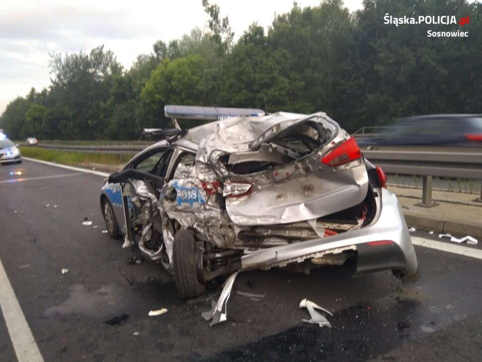 Do zdarzenia doszło około godz 1.40 w nocy. Radiowóz zabezpieczał miejsce, gdzie na prawym pasie jezdni leżało potrącone zwierzę. Sygnały świetlne były włączone. Pomimo tego w pojazd służbowy, w którym w chwili zdarzenia przebywali dwaj policjanci Komisariatu Policji III w Sosnowcu, uderzył samochód ciężarowy. Policjanci zostali przewiezieni do szpitala i ze wstępnych ustaleń wynika, że pomimo odniesionych przez nich poważnych obrażeń głowy i klatki piersiowej ich życiu nie zagraża niebezpieczeństwo. Dokładny ich stan jednak będzie można ocenić dopiero po przeprowadzeniu wszystkich koniecznych szczegółowych badań. Wszyscy uczestnicy zdarzenia byli trzeźwi. Dokładne okoliczności zdarzenia zostaną ustalone w prowadzonym postępowaniu.
