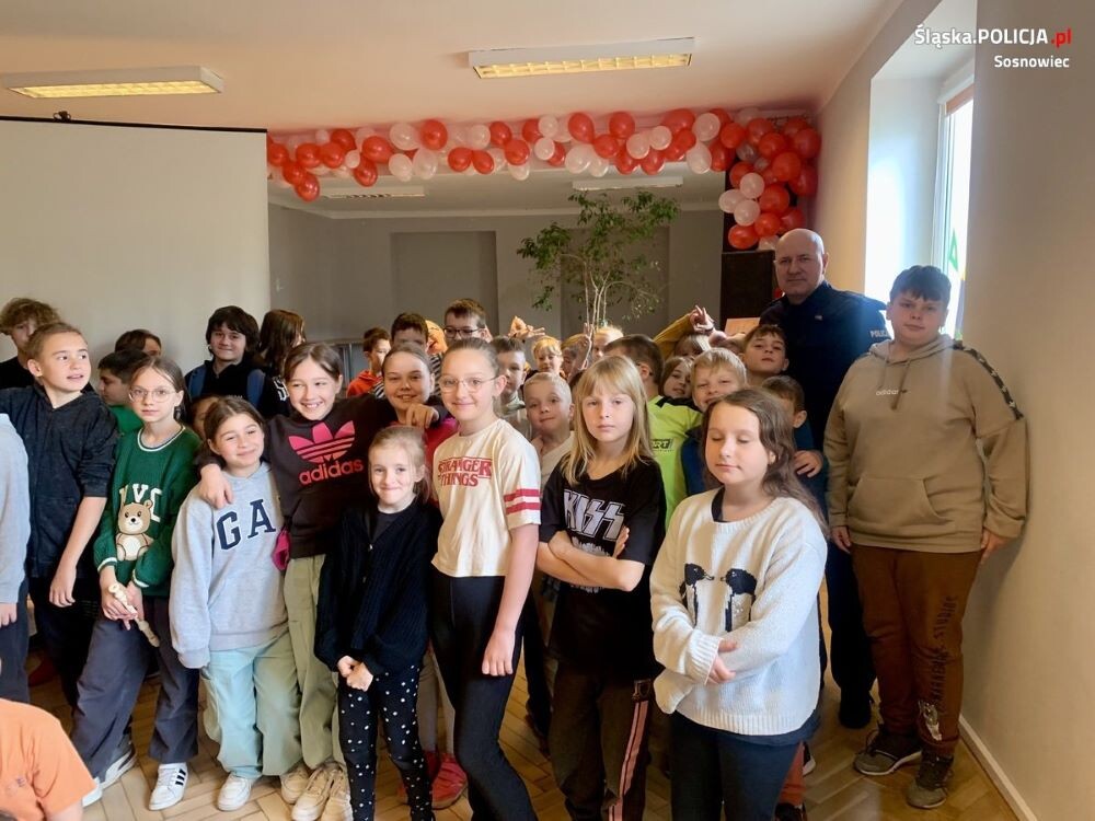Zbliżająca się majówka, to nie tylko czas odpoczynku, ale również i odpowiedzialności. Bardzo często, aby złapać oddech, wyjeżdżamy i staramy się spędzać czas na świeżym powietrzu. Ważne jest, aby od najmłodszych lat uczyć dzieci podstawowych zasad poruszania się oraz odpowiednich zachowań na drodze. Spotkanie z dziećmi było okazją do przeprowadzenia trudnych rozmów, m. in.: na temat właściwego wykorzystywania internetu, umiejętnego i odpowiedzialnego korzystanie z telefonu, a przede wszystkim okazywania sobie szacunku i stawania w obronie rówieśników doświadczających różnorakich form przemocy. Uczestniczące w spotkaniu dzieci wykazały się olbrzymią wiedzą, a na pochwałę zasługuje skupienie z jakim wysłuchały wskazówek udzielonych przez sosnowieckiego profilaktyka.