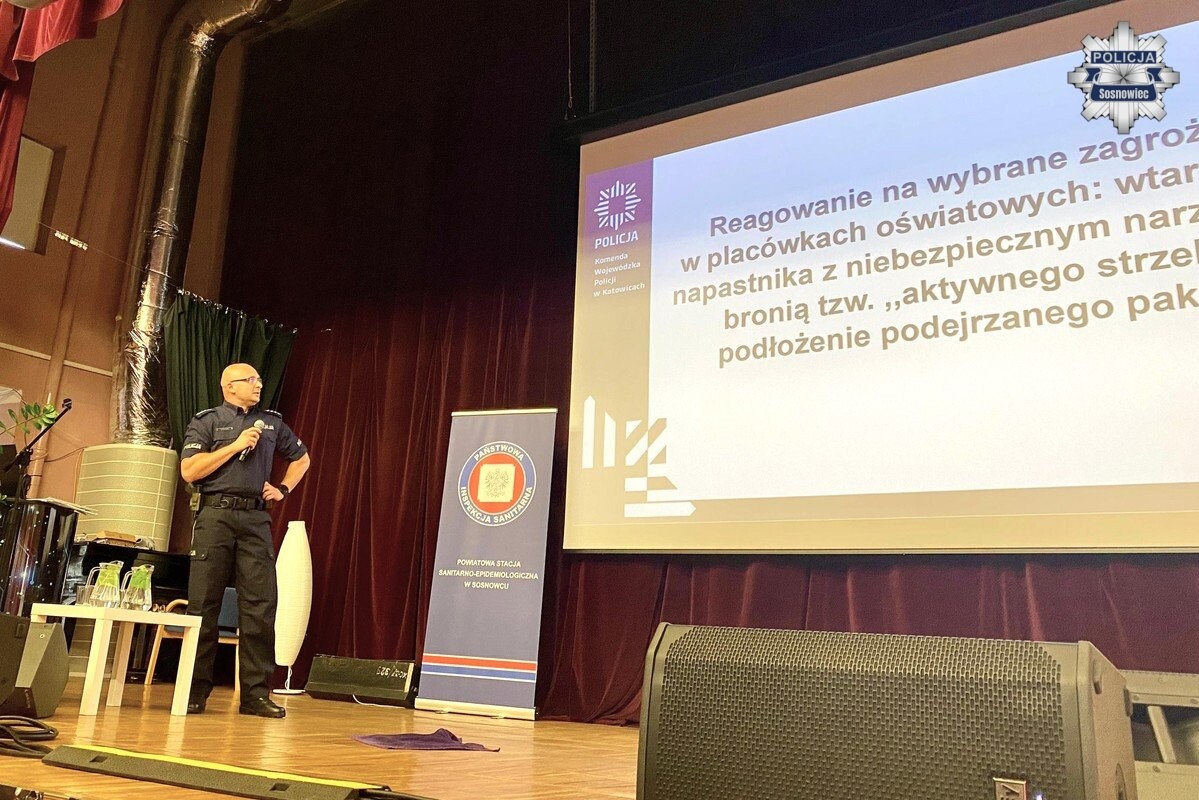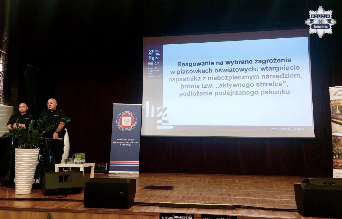 Podczas spotkania policjanci przedstawili uczestnikom procedury i sposoby reagowania w sytuacjach zagrożenia w placówkach oświatowych. Omówiono m.in. właściwe postępowanie w przypadku wtargnięcia napastnika z niebezpiecznym narzędziem czy bronią, a także w sytuacjach związanych z podejrzanymi pakunkami, które mogą stanowić zagrożenie dla zdrowia i życia. Funkcjonariusze podkreślili znaczenie szybkiej reakcji oraz współpracy pomiędzy szkołami i służbami. W trakcie konferencji poruszono również tematykę zagrożeń substancjami psychoaktywnymi.