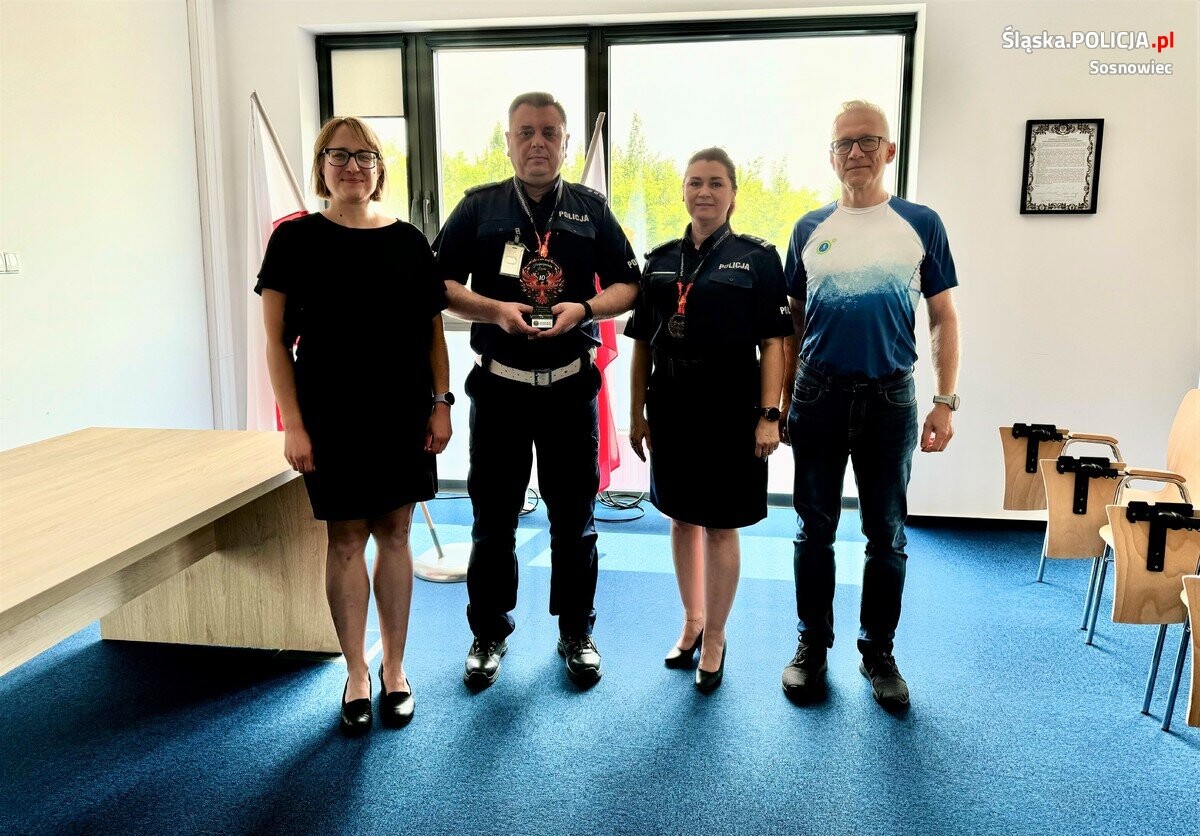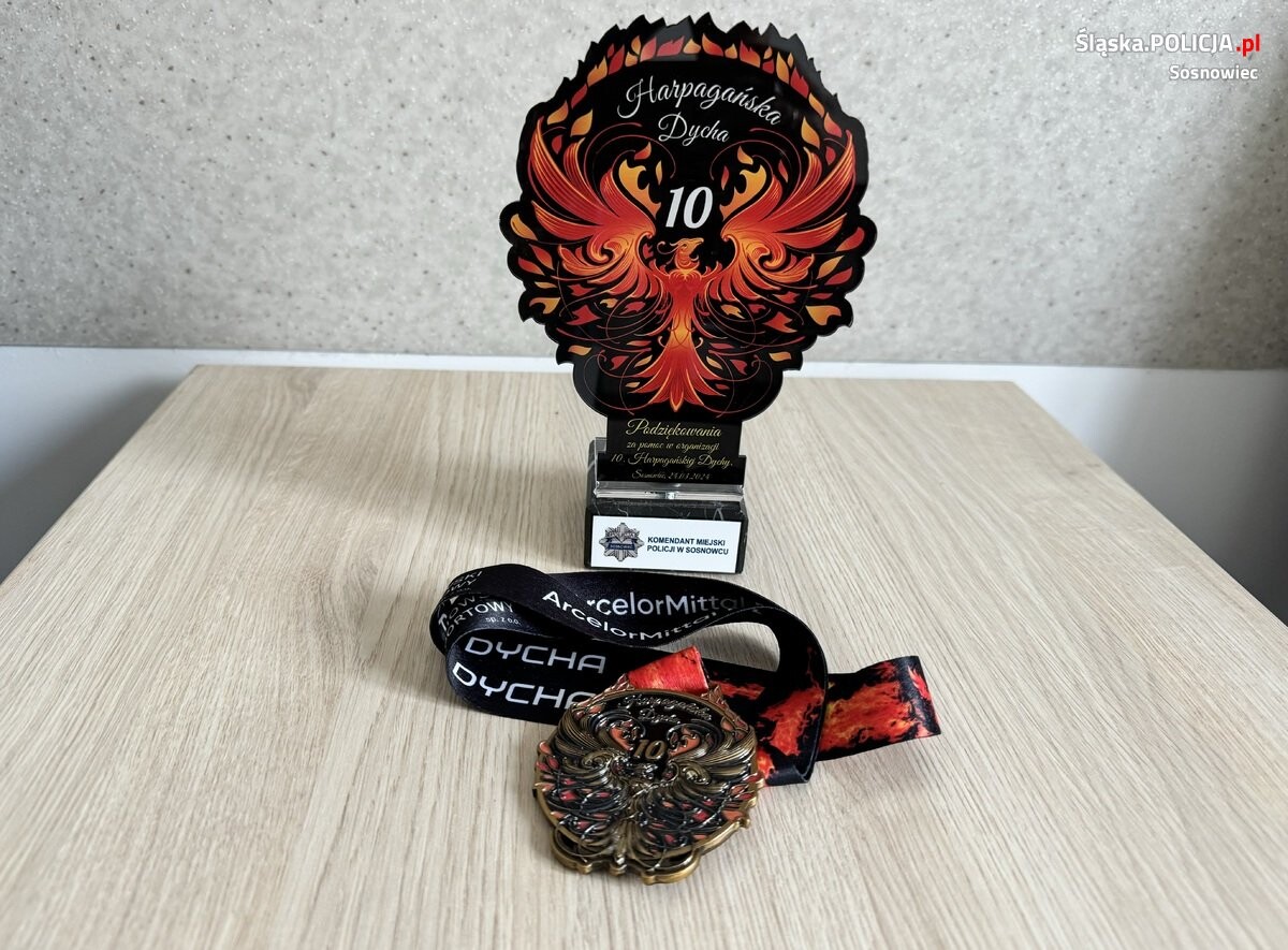Organizatorzy wydarzenia w ubiegły piątek spotkali się z sosnowieckimi policjantami, którym podziękowano za pomoc w organizacji oraz za zapewnienie bezpieczeństwa podczas biegu. Zastępca Komendanta Miejskiego Policji w Sosnowcu, młodszy inspektor Agnieszka Dudkiewicz oraz Naczelnik Wydziału Ruchu Drogowego, którzy reprezentowali tutejszą komendę, otrzymali pamiątkową statuetkę oraz medal.