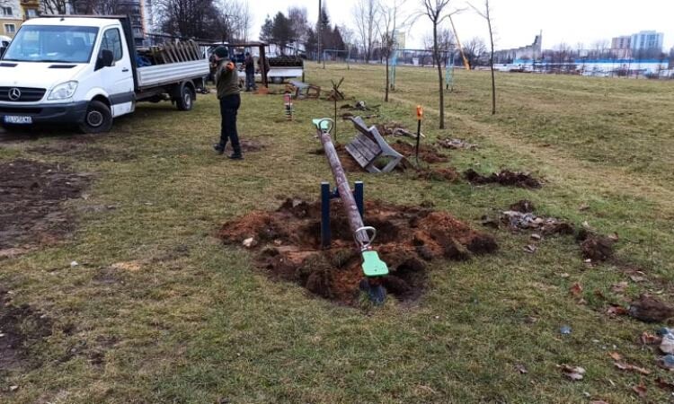 W pierwszej kolejności zdemontowano stare urządzenia widoczne na zdjęciach. W ich miejsce pojawi się super zestaw z pięcioma wieżami połączonymi różnymi przejściami. Będzie też miejsce na nowe huśtawki, karuzele, konika oraz piaskownice. Nie zapomniano też o nowym ogrodzeniu.
