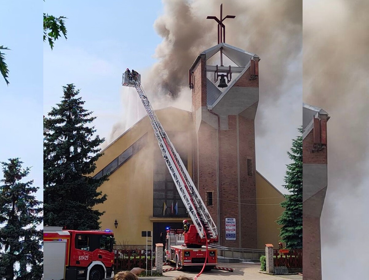 Trwa akcja gaśnicza straży pożarnej przy ulicy Bora-Komorowskiego w Sosnowcu. Pali się dach kościoła pw. świętego Floriana.