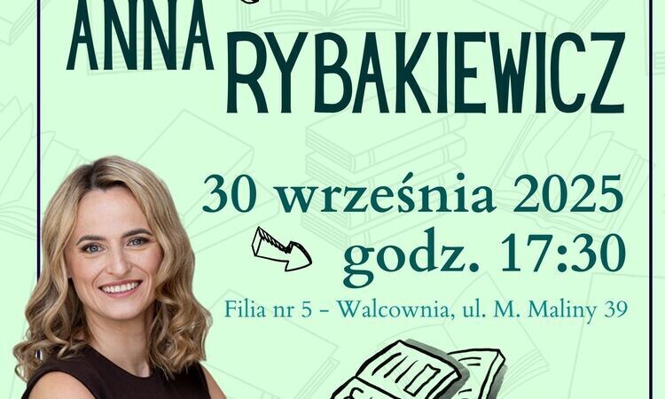 Filia nr 5 – Walcownia Miejskiej Biblioteki Publicznej w Sosnowcu (ul. M. Maliny 39) serdecznie zaprasza 30 września 2025 o godz. 17.30 na spotkanie z Anną Rybakiewicz – autorką poczytnych powieści historyczno-obyczajowych, organizowane dzięki dofinansowaniu z sosnowieckiego Budżetu Obywatelskiego. Wstęp wolny.