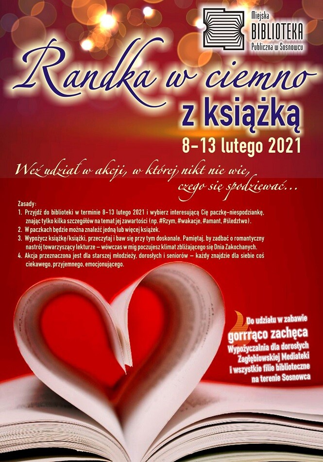 Niebawem Walentynki. Miejska Biblioteka Publiczna w Sosnowcu zaprasza wszystkich miłośników książek do udziału w akcji ”Randka w ciemno z książką” w dniach od 8-13 lutego.