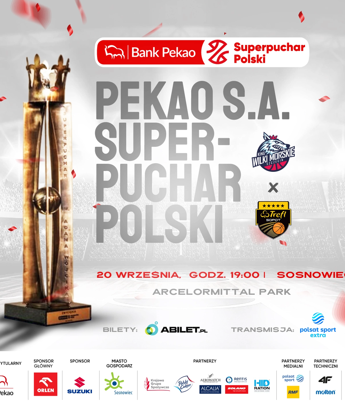 W spotkaniu o Pekao S.A. Superpuchar Polski 20 września o godz. 19:00 zmierzą się czołowe zespoły ORLEN Basket Ligi – mistrz Polski, King Szczecin oraz zdobywca Pucharu Polski, Trefl Sopot. Mecz odbędzie się w Arenie Sosnowiec wchodzącej w skład ArcelorMittal Park, a transmisję zobaczymy w sportowych stacjach Polsatu.